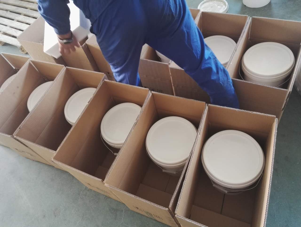 圖(1)耐磨陶瓷涂層膠正在裝箱