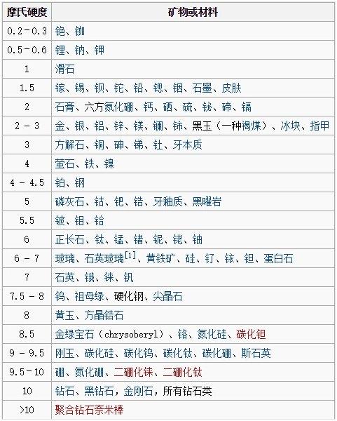 圖(2)各種材質(zhì)的莫氏硬度值,其中剛玉即我公司生產(chǎn)的耐磨陶瓷片材質(zhì)
