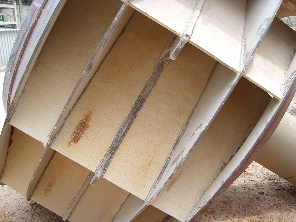 4、粘接牢固、耐熱性能好:耐磨陶瓷片采用耐熱強力膠粘貼在設(shè)備內(nèi)壁。在350℃下可長期運行不老化