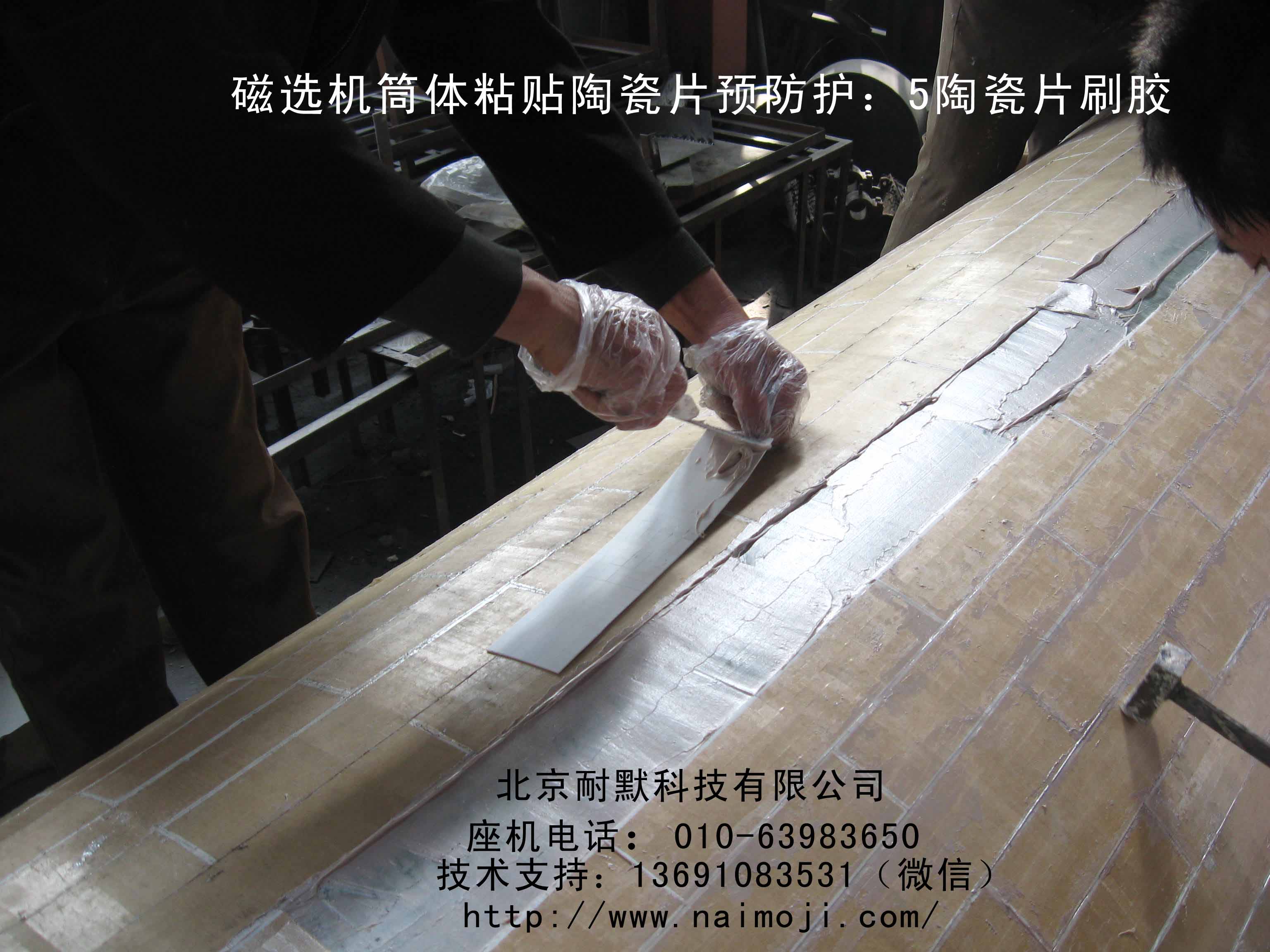 圖(3)用于磁選機(jī)筒體表面的馬賽克耐磨陶瓷片,河北承德、唐山,遼寧朝陽、撫順多數(shù)磁選機(jī)廠家采用北京耐默公司生產(chǎn)的馬賽克陶瓷片