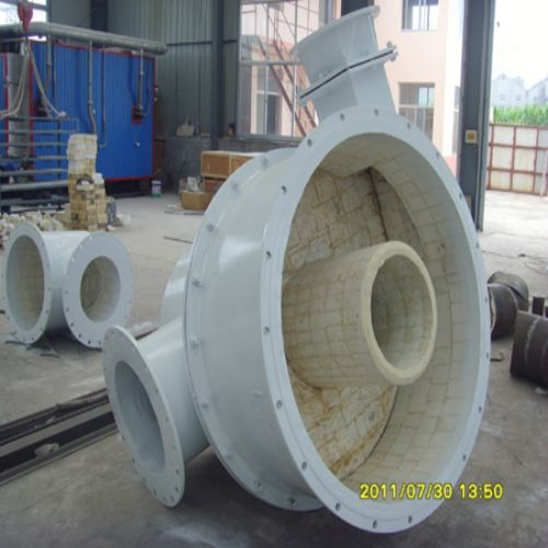 合金鑄鐵內(nèi)襯旋流器耐磨性較差,其使用壽命較短,且重量重。聚氨酯旋流器由于重量輕,成形性好,耐腐性和耐磨性較高而在近年來有所應(yīng)用,但使用中發(fā)現(xiàn),聚氨酯旋流器在輸送細(xì)小顆粒的物料時,使用效果較好,當(dāng)物料中存在大顆粒尖銳棱角的顆粒時,由于旋流器內(nèi)固-液二相流運動速度高,將受到高應(yīng)力沖擊,容易造成聚氨酯內(nèi)襯變形,甚至成片撕裂,因而不但影響旋流器的分級、分離效果,而且嚴(yán)重時碎片還會堵塞旋流器,從而造成停產(chǎn)。