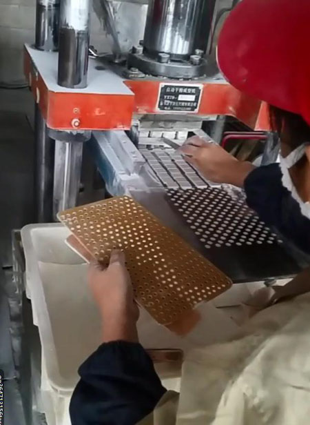 圖(2)正在壓制氧化鋁耐磨陶瓷塊